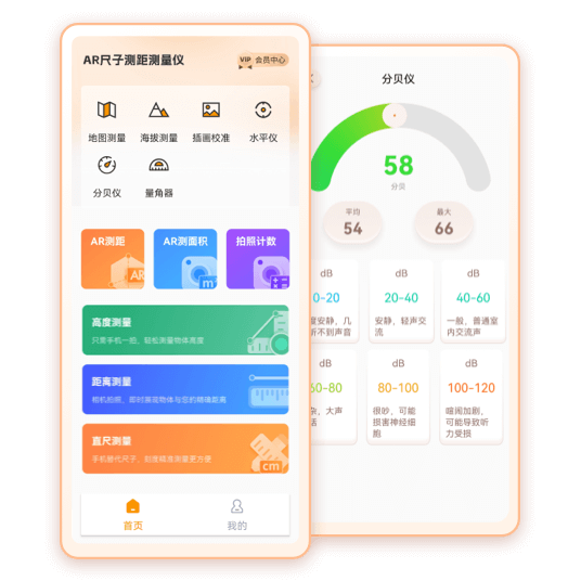 一款精准的高度角度距离精准测量软件。你只需要把手机瞄准目标物的底部,便可自动测量距离,也可瞄准物品顶端来测量物品高度,可在实时预览状态下完成操作。